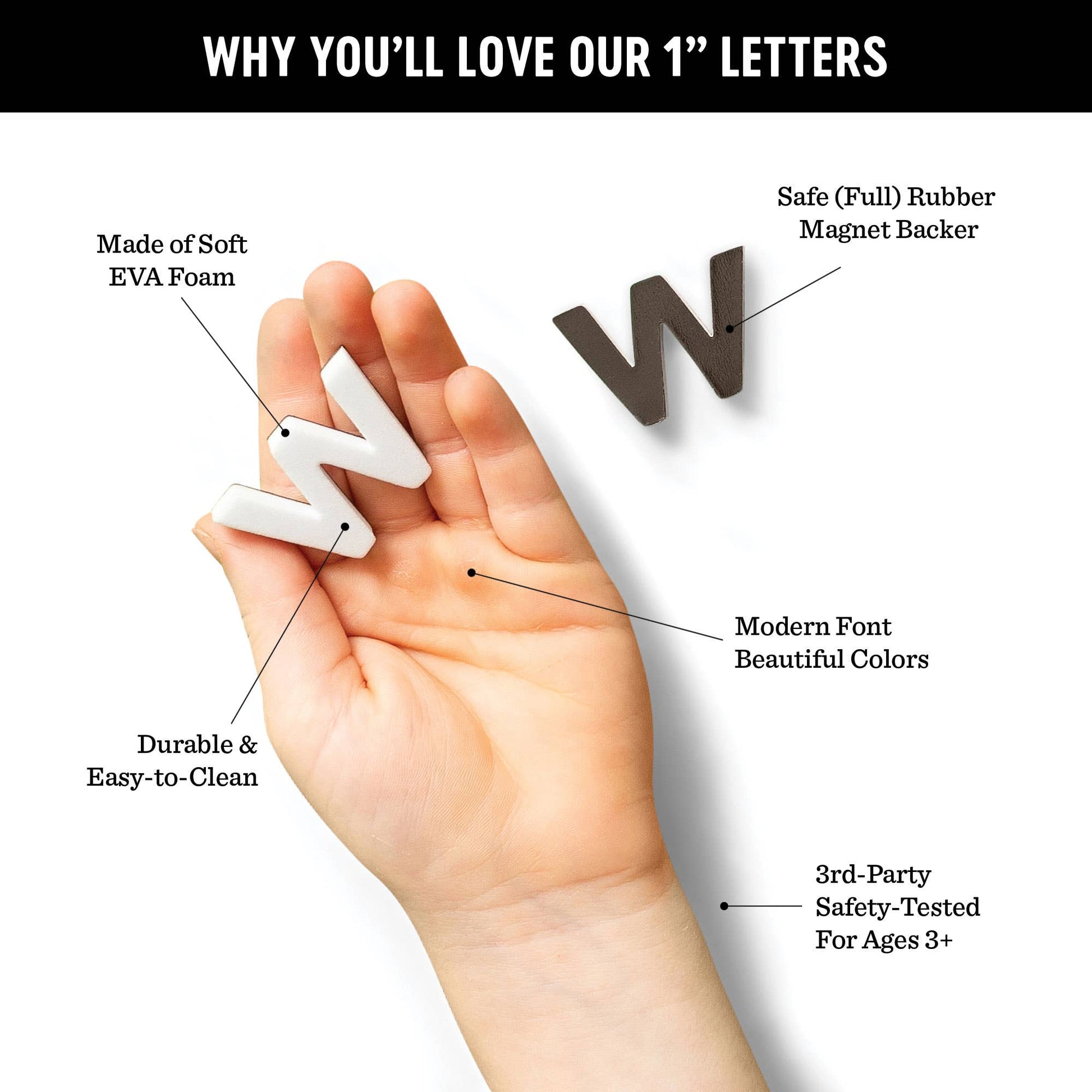 Elevate your inventory with our 200-piece modern magnetic letter sets, perfect for kids 3+. Each 1" letter is made from soft EVA foam with a full rubber magnetic backing, ensuring both safety and durability. Available in a variety of solid colors, these magnetic letters are great for learning, home decor, and creative displays, appealing to a wide age range, including tweens.