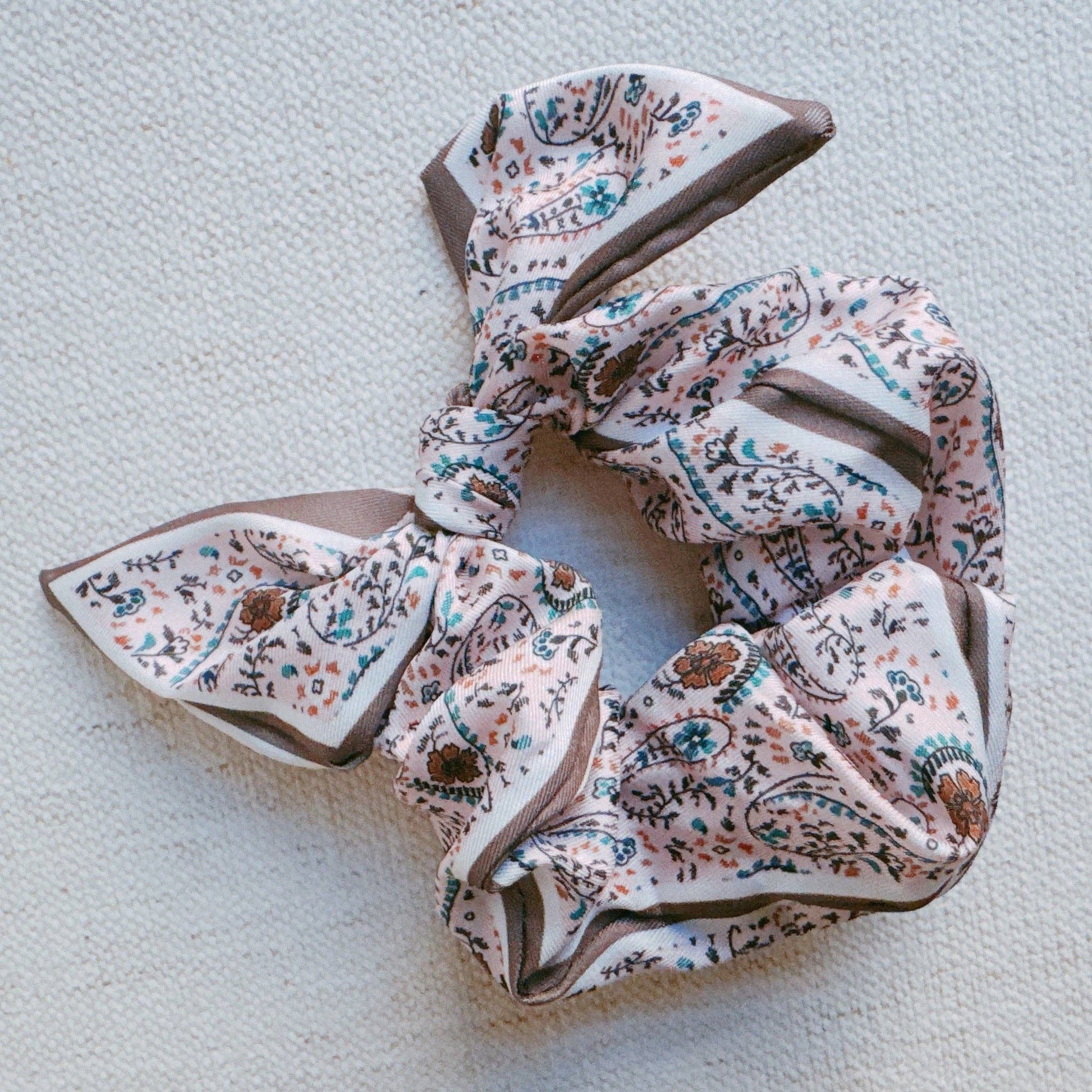 Add a touch of style to your hair with this hair scrunch. Featuring a modern bandana pattern and a unique tie design, this accessory adds a fashionable twist to any hairstyle. It's perfect for everyday wear.