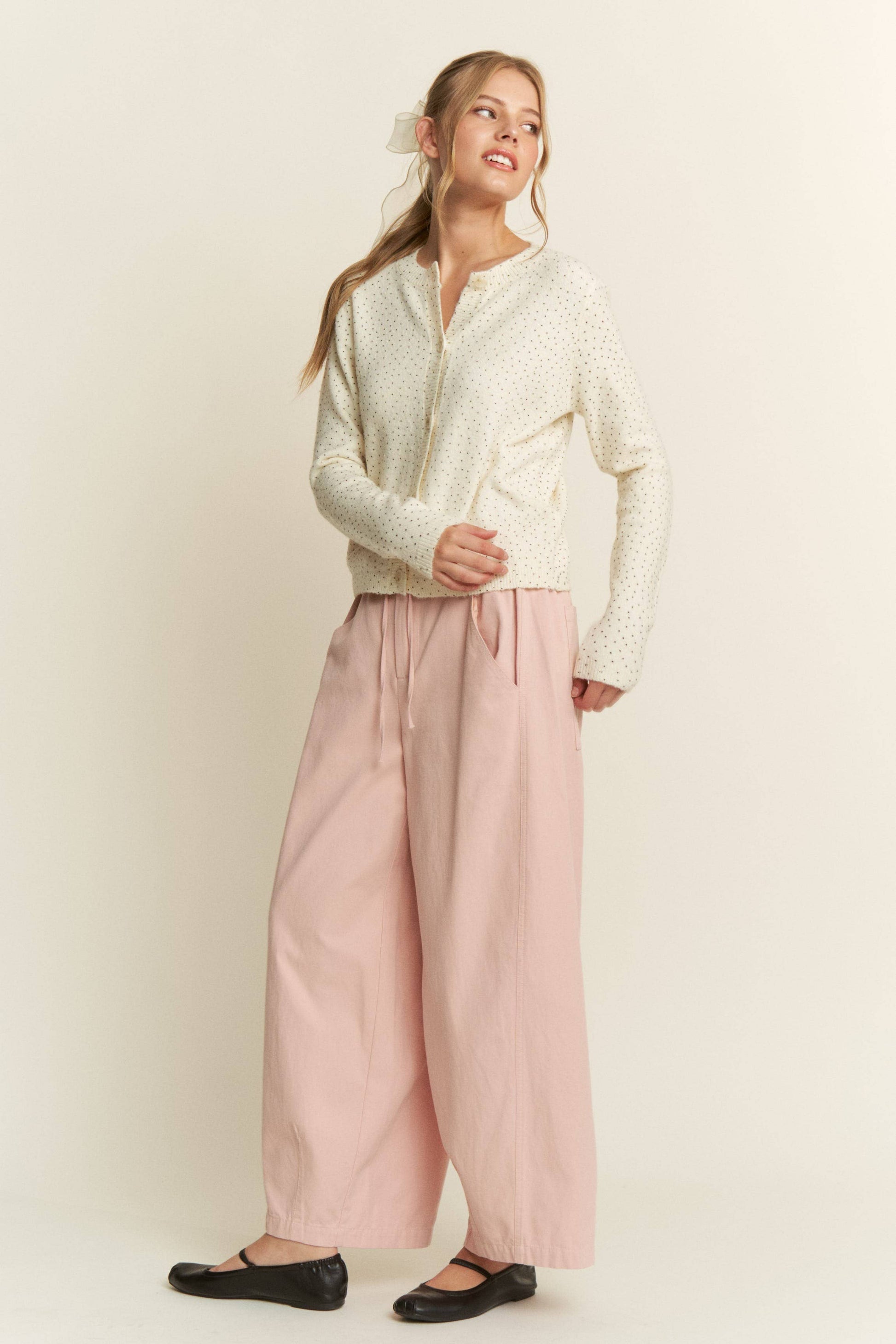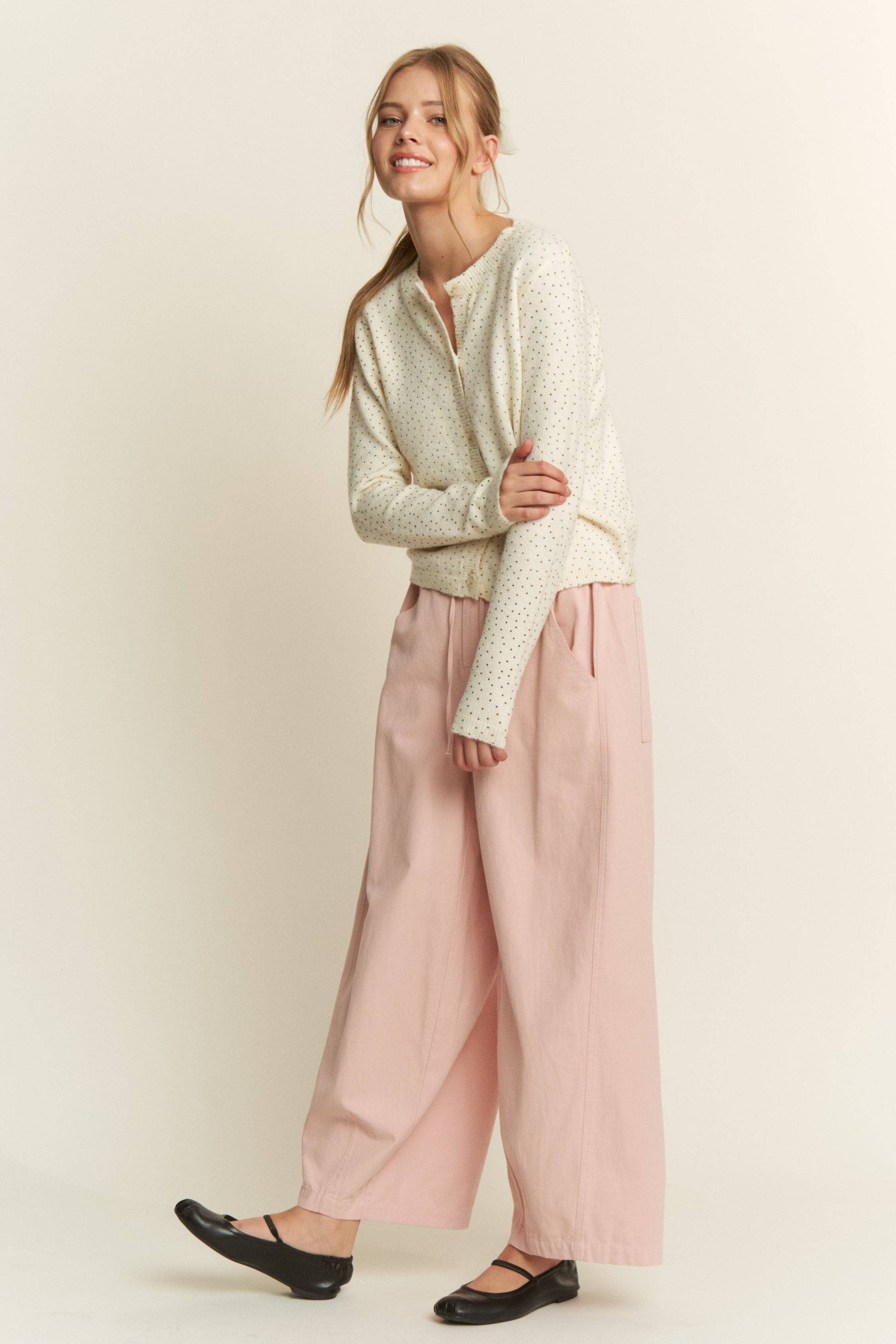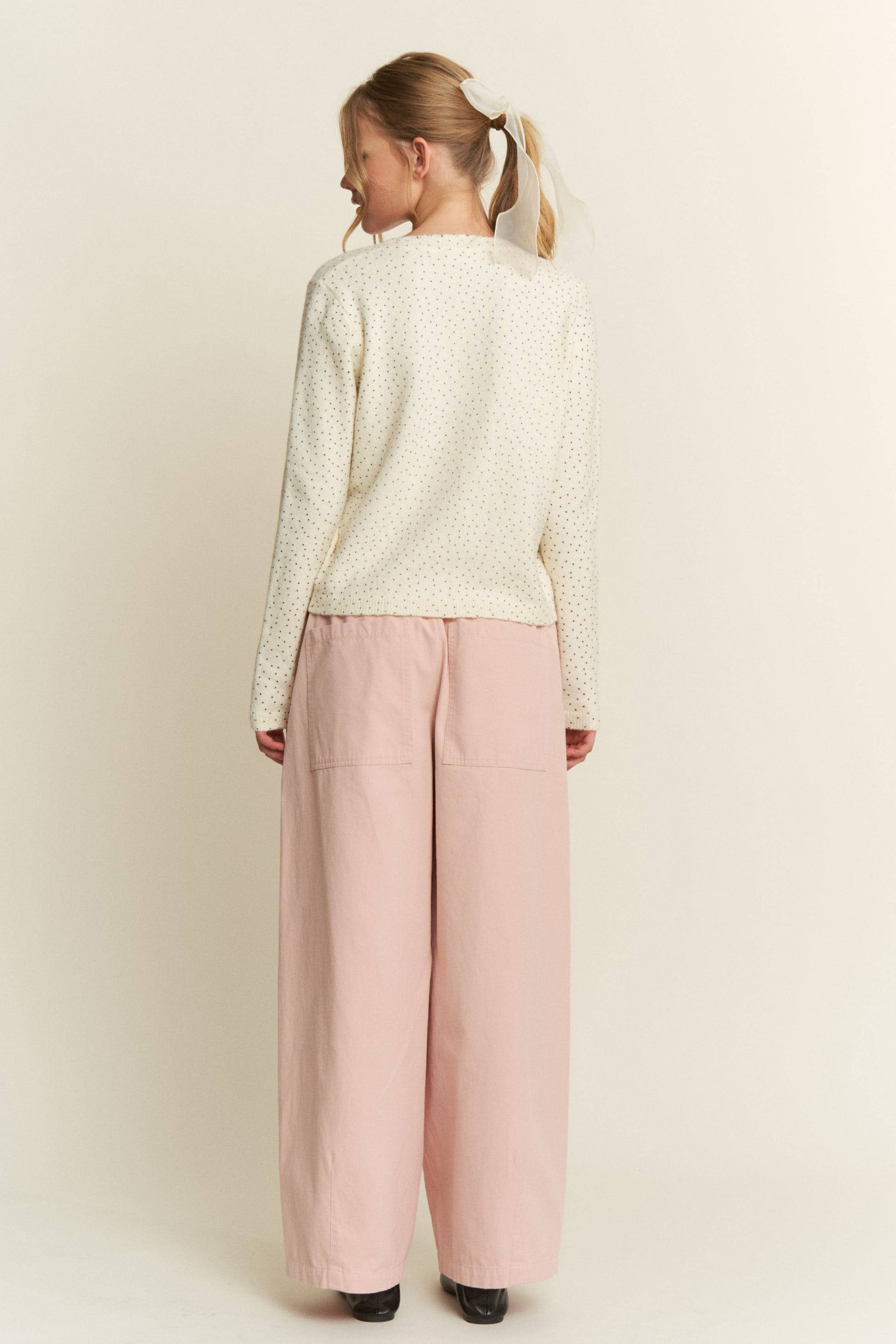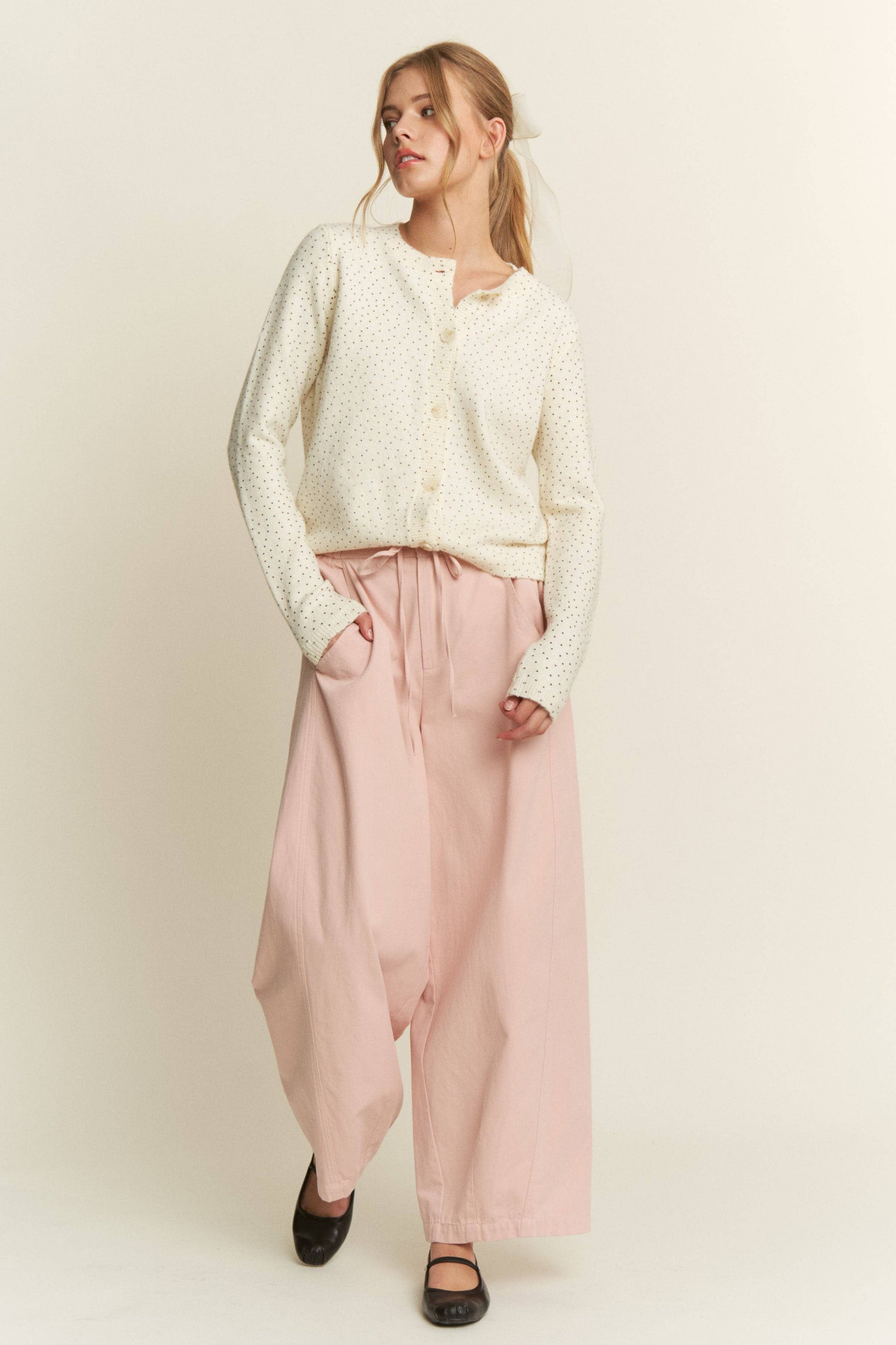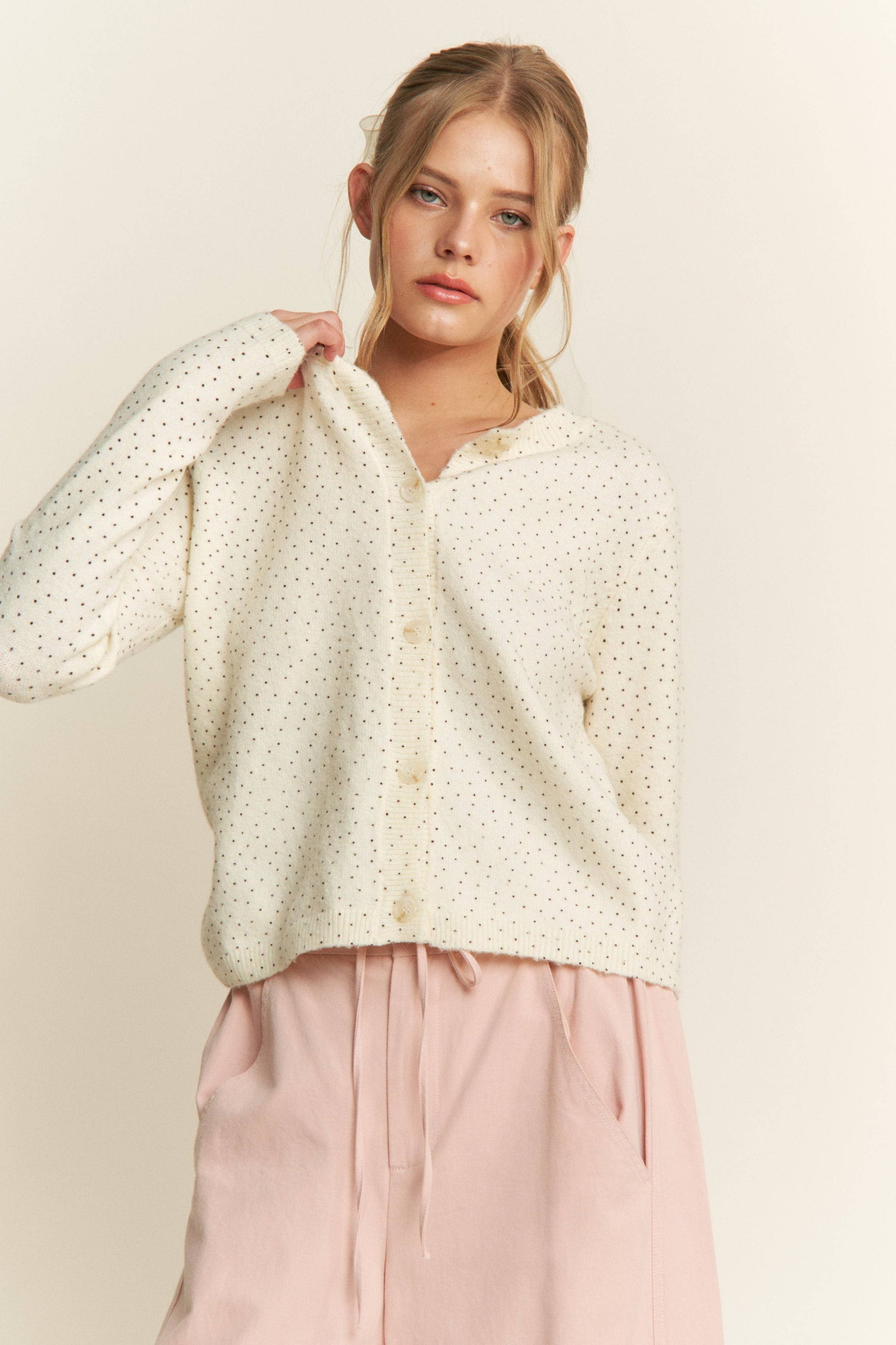 Polka Dot Knit Cardigan — Grey