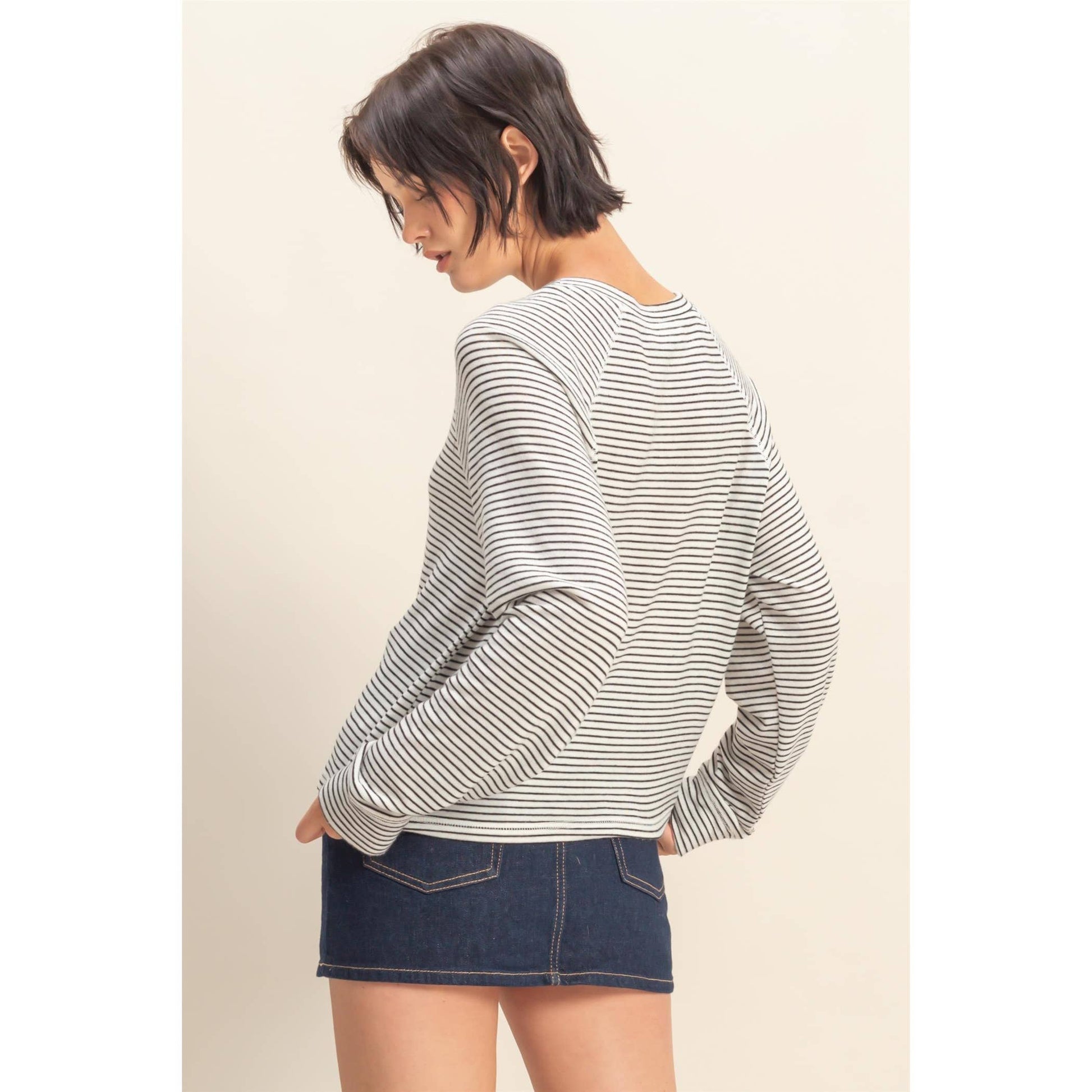 Introducing a timeless striped top designed for versatility and comfort. Boasting a relaxed fit and a soft textured fabric, this piece skilfully marries style with practicality, making it ideal for layering or a standalone statement. Perfect for transitioning between seasons, pair it with tailored trousers or a chic skirt for an effortlessly polished look.